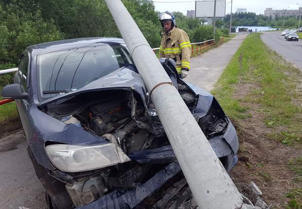 7 июля 2018 г. в 11.34 в службу спасения позвонила женщина, которая сообщила, что подъезжая к въезду на эстакаду на проспекте Труда увидела, как легковой автомобиль врезался в световую опору.