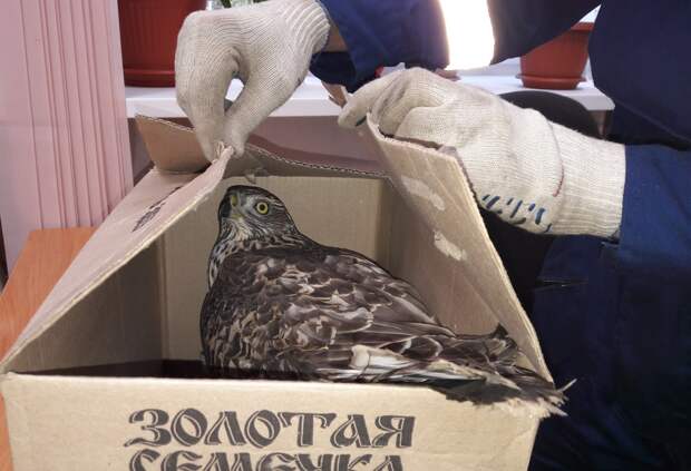 5 сентября 2016 г. в 14 часов в службу спасения обратились работник профилактория "Звездочка". Они сообщили, что большая хищная птица сидит в ветках на земле второй день на территории профилактория. Спасатели при помощи сетки птицу поймали, поместили в коробку, привезли на базу. Позднее передали птицу орнитологу, это оказался ястреб-тетеревятник.