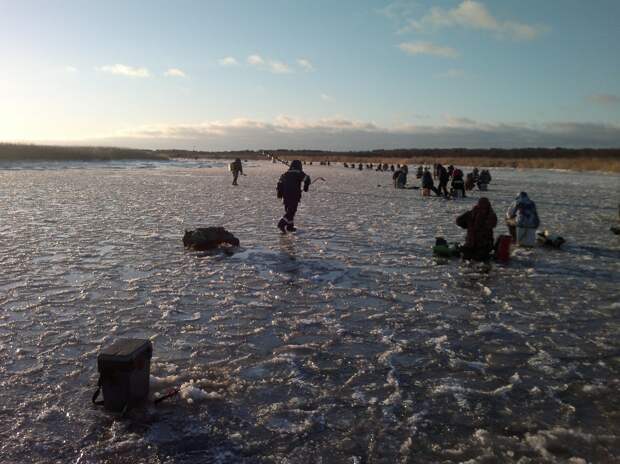 Озеро Театральное - лед 7 см, озеро за ДУ "Стройка" - лед 10 см, промоина от сброса. Озеро Чаячье: лед 9 см, ГВМК "Прибой" - лед 8 см, рыхлый, р. Камбалица, в районе подвесного моста лед 7 см, по руслу - промоина, Ягринский мост - открытая вода, забереги.Спасатели предупреждают: выход на лед опасен, воздержитесь от рыбалки до установления стабильно низких температур.